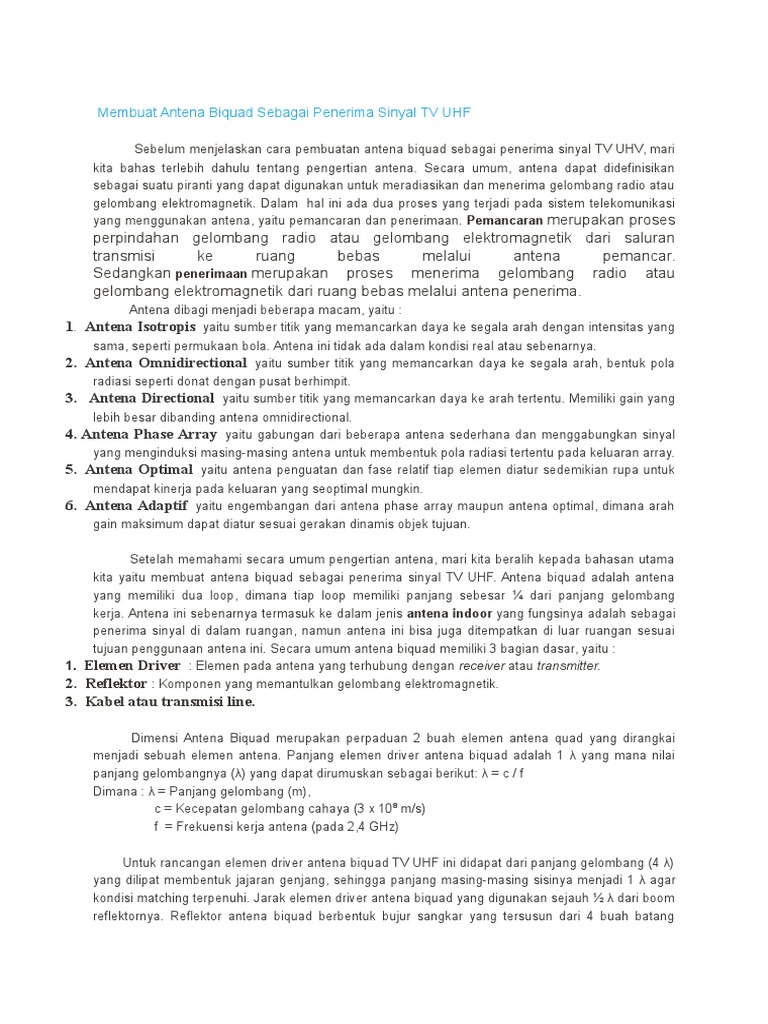 DOC) Selasa, 18 November 2014 Membuat Antena Biquad Sebagai Penerima Sinyal TV UHF | Apriyansah Alga - Academia.edu